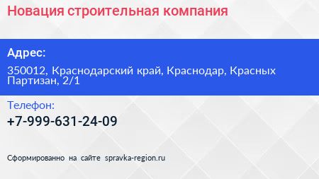Новация, строительная компания по адресу 350012, Краснодарский край, Краснодар, Красных Партизан, 2/1 в дальнейшем Организация, размещена в следующих категориях: