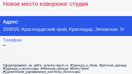 Новое место, коворкинг-студия по адресу 350010, Краснодарский край, Краснодар, Зиповская, 5г в дальнейшем Организация, размещена в следующих категориях: