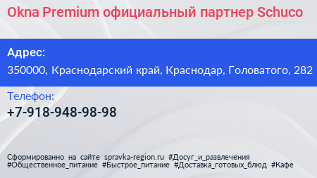 Okna Premium, официальный партнер Schuco по адресу 350000, Краснодарский край, Краснодар, Головатого, 282 в дальнейшем Организация, размещена в следующих категориях: