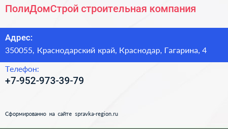 ПолиДомСтрой, строительная компания по адресу 350055, Краснодарский край, Краснодар, Гагарина, 4 в дальнейшем Организация, размещена в следующих категориях: