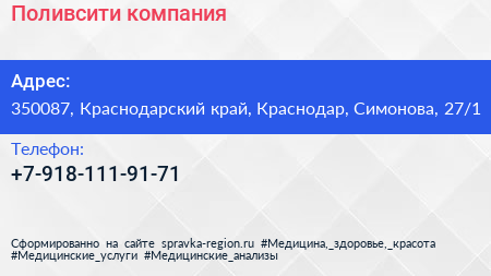 Поливсити, компания по адресу 350087, Краснодарский край, Краснодар, Симонова, 27/1 в дальнейшем Организация, размещена в следующих категориях: