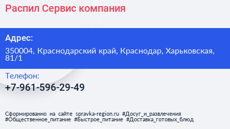 Распил-Сервис, компания по адресу 350004, Краснодарский край, Краснодар, Харьковская, 81/1 в дальнейшем Организация, размещена в следующих категориях: