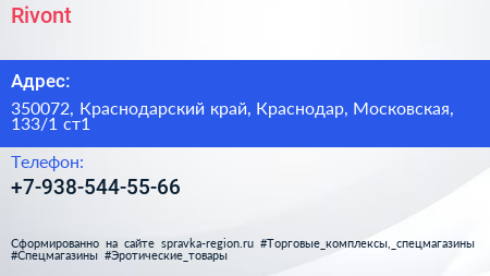 Rivont по адресу 350072, Краснодарский край, Краснодар, Московская, 133/1 ст1 в дальнейшем Организация, размещена в следующих категориях: