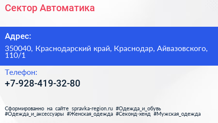 Сектор-Автоматика по адресу 350040, Краснодарский край, Краснодар, Айвазовского, 110/1 в дальнейшем Организация, размещена в следующих категориях: