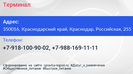 Терминал по адресу 350016, Краснодарский край, Краснодар, Российская, 255 в дальнейшем Организация, размещена в следующих категориях: