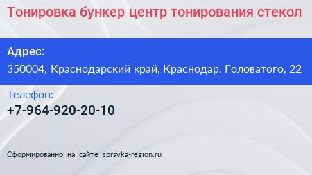 Тонировка-бункер, центр тонирования стекол по адресу 350004, Краснодарский край, Краснодар, Головатого, 22 в дальнейшем Организация, размещена в следующих категориях: