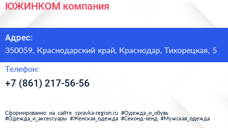ЮЖИНКОМ, компания по адресу 350059, Краснодарский край, Краснодар, Тихорецкая, 5 в дальнейшем Организация, размещена в следующих категориях: