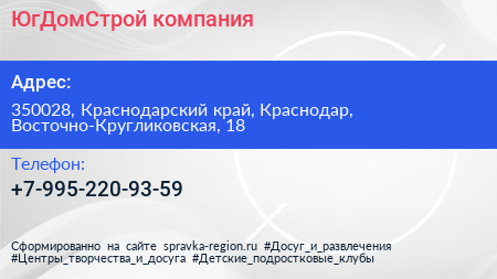 ЮгДомСтрой, компания по адресу 350028, Краснодарский край, Краснодар, Восточно-Кругликовская, 18 в дальнейшем Организация, размещена в следующих категориях: