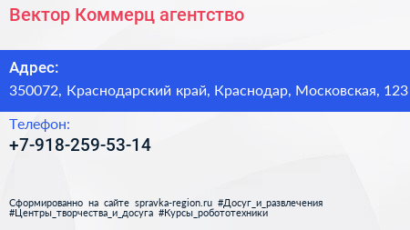 Вектор-Коммерц, агентство по адресу 350072, Краснодарский край, Краснодар, Московская, 123 в дальнейшем Организация, размещена в следующих категориях: