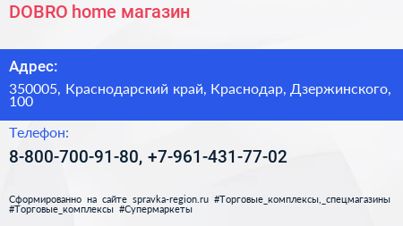 DOBRO home, магазин по адресу 350005, Краснодарский край, Краснодар, Дзержинского, 100 в дальнейшем Организация, размещена в следующих категориях: