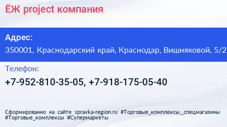 ЁЖ project, компания по адресу 350001, Краснодарский край, Краснодар, Вишняковой, 5/2 в дальнейшем Организация, размещена в следующих категориях: