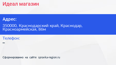 Идеал, магазин по адресу 350000, Краснодарский край, Краснодар, Красноармейская, 86м в дальнейшем Организация, размещена в следующих категориях:
