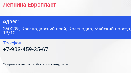 Лепнина Европласт по адресу 350039, Краснодарский край, Краснодар, Майский проезд, 18/10 в дальнейшем Организация, размещена в следующих категориях: