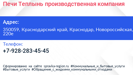 Печи Теплынь, производственная компания по адресу 350059, Краснодарский край, Краснодар, Новороссийская, 220е в дальнейшем Организация, размещена в следующих категориях: