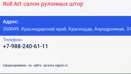 Roll Art, салон рулонных штор по адресу 350049, Краснодарский край, Краснодар, Аэродромная, 37 в дальнейшем Организация, размещена в следующих категориях: