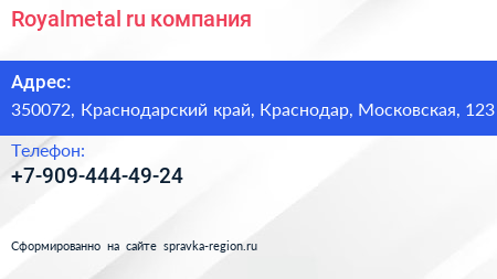 Royalmetal.ru, компания по адресу 350072, Краснодарский край, Краснодар, Московская, 123 в дальнейшем Организация, размещена в следующих категориях:
