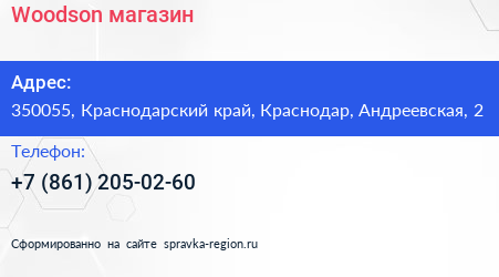 Woodson, магазин по адресу 350055, Краснодарский край, Краснодар, Андреевская, 2 в дальнейшем Организация, размещена в следующих категориях: