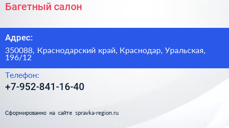 Багетный салон по адресу 350088, Краснодарский край, Краснодар, Уральская, 196/12 в дальнейшем Организация, размещена в следующих категориях:
