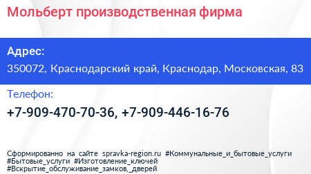 Мольберт, производственная фирма по адресу 350072, Краснодарский край, Краснодар, Московская, 83 в дальнейшем Организация, размещена в следующих категориях: