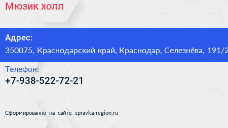 Мюзик-холл по адресу 350075, Краснодарский край, Краснодар, Селезнёва, 191/2 в дальнейшем Организация, размещена в следующих категориях: