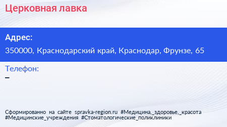 Церковная лавка по адресу 350000, Краснодарский край, Краснодар, Фрунзе, 65 в дальнейшем Организация, размещена в следующих категориях: