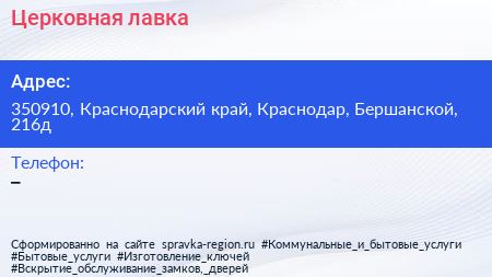 Церковная лавка по адресу 350910, Краснодарский край, Краснодар, Бершанской, 216д в дальнейшем Организация, размещена в следующих категориях: