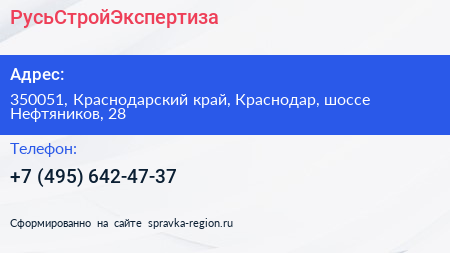 РусьСтройЭкспертиза по адресу 350051, Краснодарский край, Краснодар, шоссе Нефтяников, 28 в дальнейшем Организация, размещена в следующих категориях: