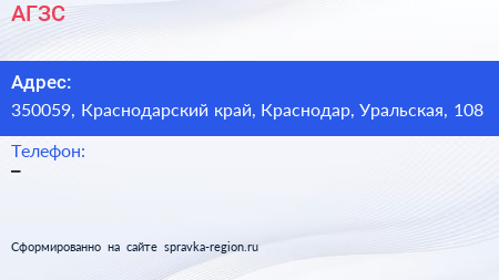 АГЗС по адресу 350059, Краснодарский край, Краснодар, Уральская, 108 в дальнейшем Организация, размещена в следующих категориях: