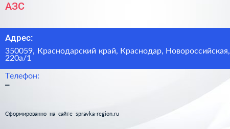 АЗС по адресу 350059, Краснодарский край, Краснодар, Новороссийская, 220а/1 в дальнейшем Организация, размещена в следующих категориях: