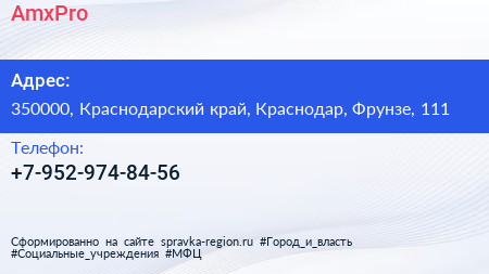 АmxРro по адресу 350000, Краснодарский край, Краснодар, Фрунзе, 111 в дальнейшем Организация, размещена в следующих категориях: