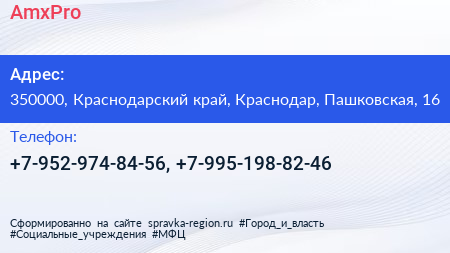 АmxРro по адресу 350000, Краснодарский край, Краснодар, Пашковская, 16 в дальнейшем Организация, размещена в следующих категориях: