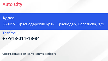 Auto City по адресу 350059, Краснодарский край, Краснодар, Селезнёва, 1/1 в дальнейшем Организация, размещена в следующих категориях: