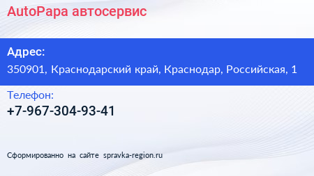AutoPapa, автосервис по адресу 350901, Краснодарский край, Краснодар, Российская, 1 в дальнейшем Организация, размещена в следующих категориях: