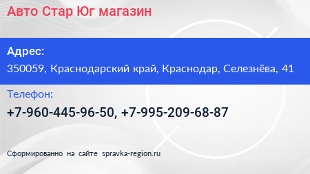 Авто-Стар Юг, магазин по адресу 350059, Краснодарский край, Краснодар, Селезнёва, 41 в дальнейшем Организация, размещена в следующих категориях: