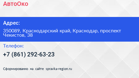АвтоОко по адресу 350089, Краснодарский край, Краснодар, проспект Чекистов, 38 в дальнейшем Организация, размещена в следующих категориях: