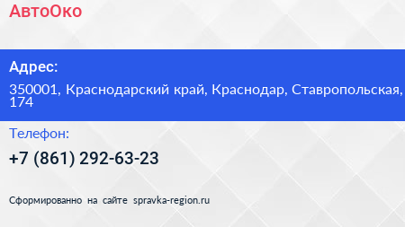 АвтоОко по адресу 350001, Краснодарский край, Краснодар, Ставропольская, 174 в дальнейшем Организация, размещена в следующих категориях: