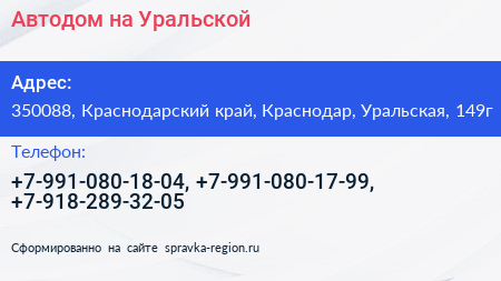 Автодом на Уральской по адресу 350088, Краснодарский край, Краснодар, Уральская, 149г в дальнейшем Организация, размещена в следующих категориях: