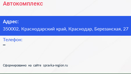 Автокомплекс по адресу 350002, Краснодарский край, Краснодар, Березанская, 27 в дальнейшем Организация, размещена в следующих категориях: