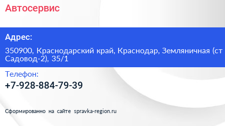 Автосервис по адресу 350900, Краснодарский край, Краснодар, Земляничная (ст Садовод-2), 35/1 в дальнейшем Организация, размещена в следующих категориях: