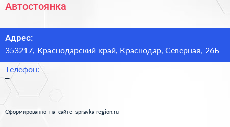 Автостоянка по адресу 353217, Краснодарский край, Краснодар, Северная, 26Б в дальнейшем Организация, размещена в следующих категориях: