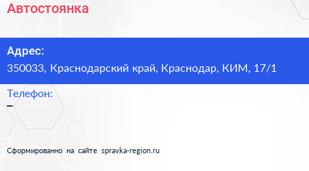 Автостоянка по адресу 350033, Краснодарский край, Краснодар, КИМ, 17/1 в дальнейшем Организация, размещена в следующих категориях: