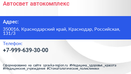 Автосвет, автокомплекс по адресу 350016, Краснодарский край, Краснодар, Российская, 131/3 в дальнейшем Организация, размещена в следующих категориях: