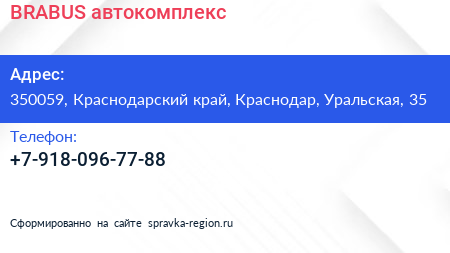 BRABUS, автокомплекс по адресу 350059, Краснодарский край, Краснодар, Уральская, 35 в дальнейшем Организация, размещена в следующих категориях: