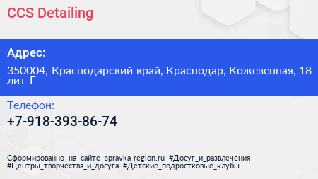 CCS-Detailing по адресу 350004, Краснодарский край, Краснодар, Кожевенная, 18 лит Г в дальнейшем Организация, размещена в следующих категориях: