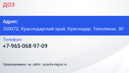 ДОЗ по адресу 350072, Краснодарский край, Краснодар, Тополиная, 30 в дальнейшем Организация, размещена в следующих категориях: