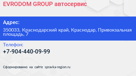 EVRODOM-GROUP, автосервис по адресу 350033, Краснодарский край, Краснодар, Привокзальная площадь, 7 в дальнейшем Организация, размещена в следующих категориях: