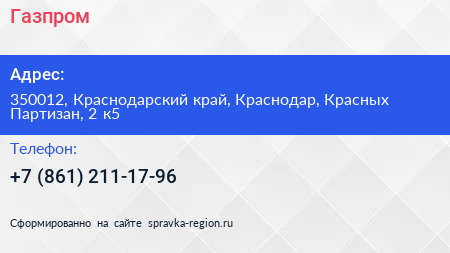 Газпром по адресу 350012, Краснодарский край, Краснодар, Красных Партизан, 2 к5 в дальнейшем Организация, размещена в следующих категориях: