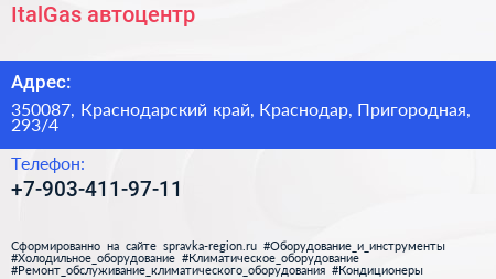 ItalGas, автоцентр по адресу 350087, Краснодарский край, Краснодар, Пригородная, 293/4 в дальнейшем Организация, размещена в следующих категориях: