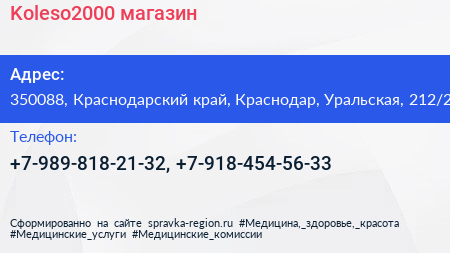 Koleso2000, магазин по адресу 350088, Краснодарский край, Краснодар, Уральская, 212/2 в дальнейшем Организация, размещена в следующих категориях: