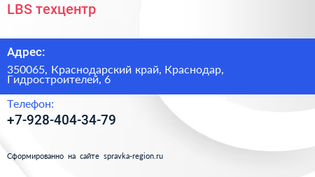 LBS, техцентр по адресу 350065, Краснодарский край, Краснодар, Гидростроителей, 6 в дальнейшем Организация, размещена в следующих категориях: